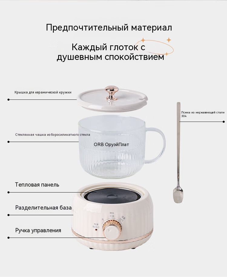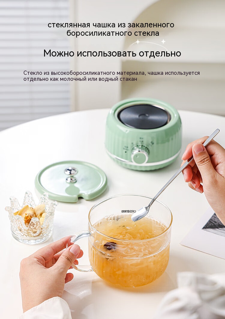 Керамическая крышка чашки + корпус из боросиликатного стекла, качественные материалы для安心 каждого глотка.