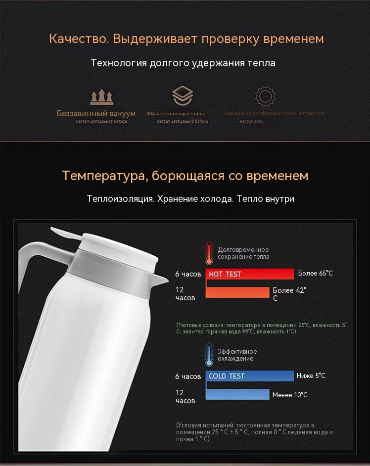 ● Вакуумная внутренняя колба для улучшенного сохранения тепла и холода.