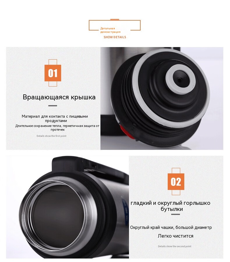 Вращающаяся крышка из пищевого безопасного материала: герметичность, длительное сохранение температуры и защита от протечек.