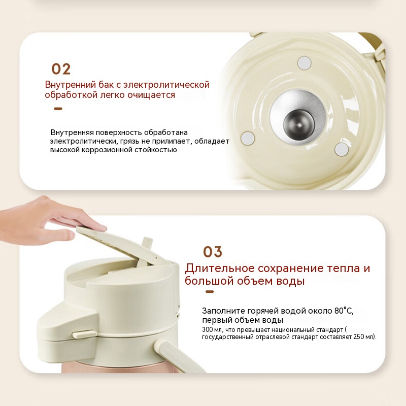 Внутренняя поверхность обработана электролитическим методом, что препятствует прилипанию загрязнений и повышает устойчивость к коррозии.