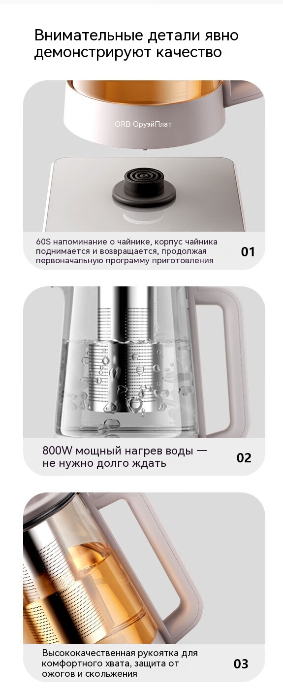 Качественное утолщенное боросиликатное стекло устойчиво к перепадам температур, безопасность видна невооруженным глазом.