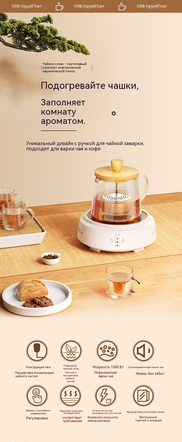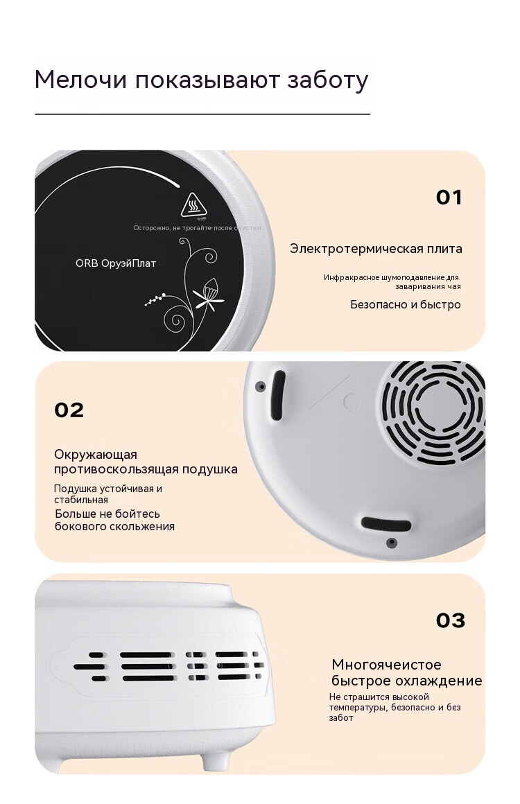 Сенсорное управление, высокая мощность 1500 Вт, инфракрасный нагрев.
