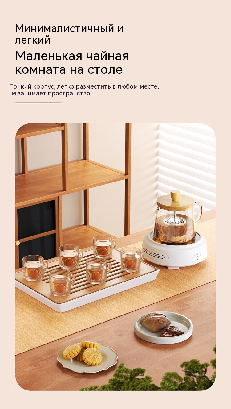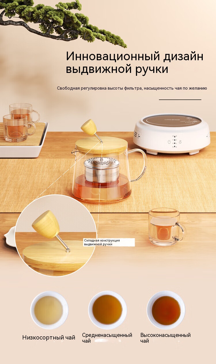 Инновационная конструкция с выдвижной штангой позволяет свободно регулировать высоту фильтра для контроля концентрации чая.